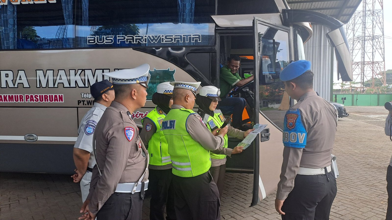 Kegiatan ini merupakan bagian dari Operasi Keselamatan Semeru 2026 yang berlangsung di Pool Bus Solo Putra Makmur (SPM), Kecamatan Kejayan, Kabupaten Pasuruan, Rabu (4/2).