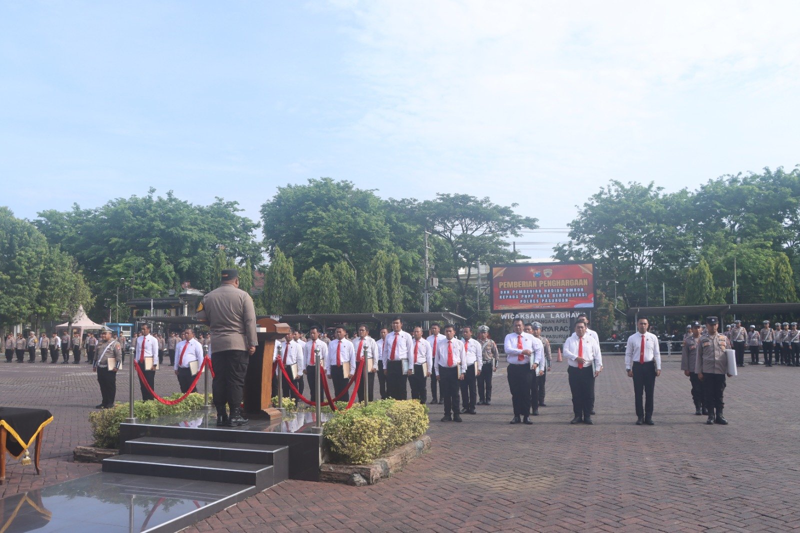 Acara berlangsung dalam apel khusus di Lapangan Apel Sarja Arya Rancana, Kamis (20/11/2025), yang dihadiri seluruh jajaran Polres Pasuruan, termasuk Wakapolres, para pejabat utama, dan Kapolsek.