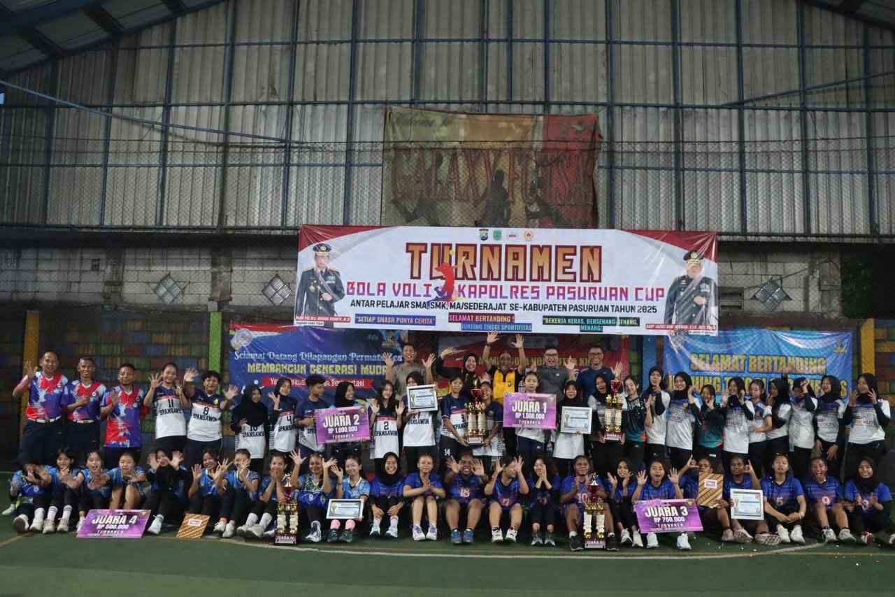 PASURUAN | KABARPRESISI — Kejuaraan bola voli Kapolres Pasuruan Cup 2025 antar pelajar resmi berakhir di GOR Permata Zhea, Desa Cangkringmalang, Kecamatan Beji, Kabupaten Pasuruan, pada Kamis (23/10/2025).