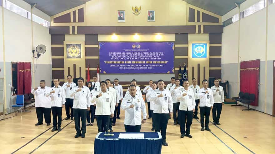 TULUNGAGUNG | KABARPRESISI – Lembaga Pemasyarakatan (Lapas) Kelas IIB Tulungagung mengambil langkah strategis dengan menggelar Penandatanganan Komitmen Bersama Pemberantasan Narkoba, Handphone, dan Barang Terlarang Lainnya.
