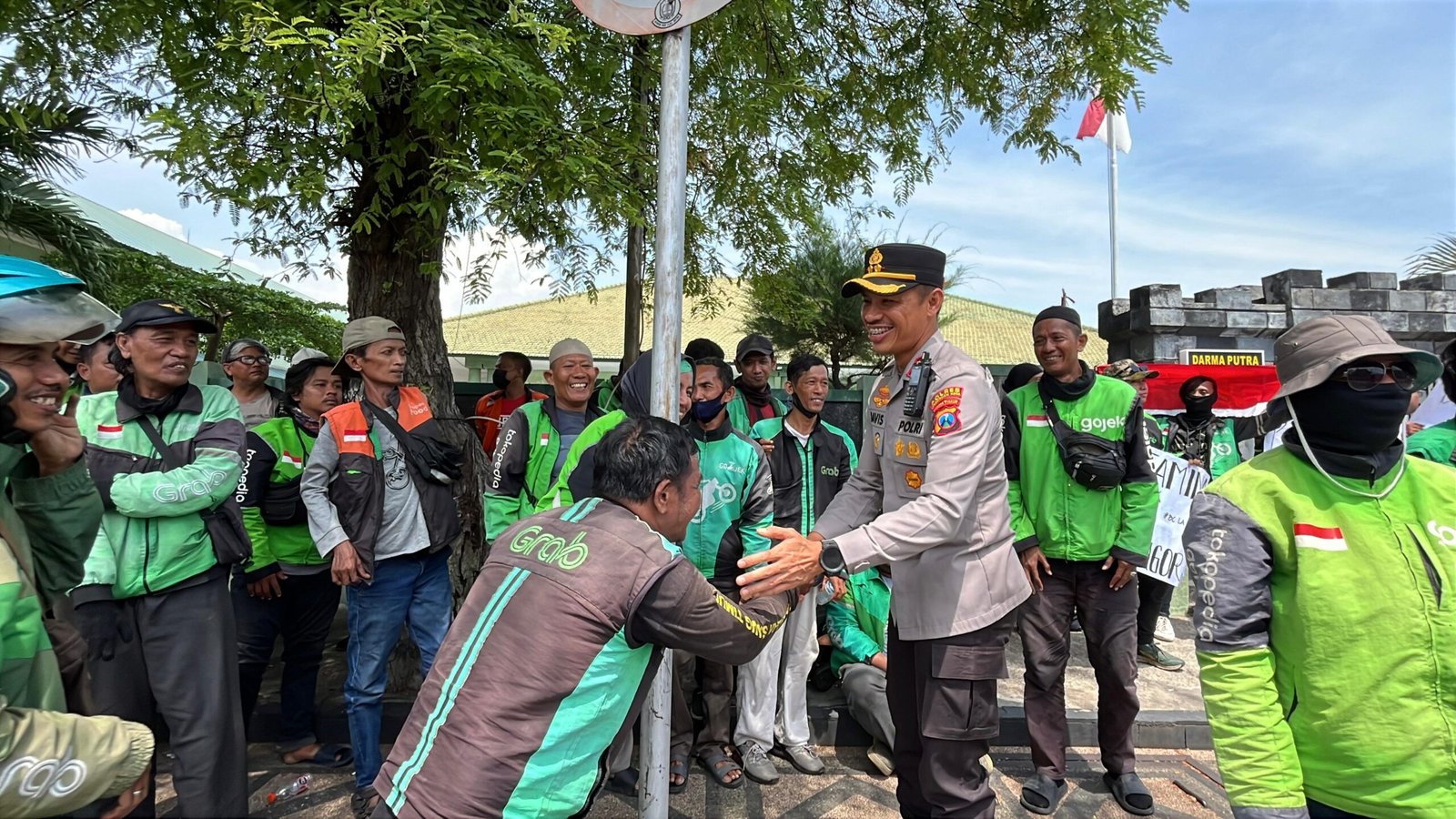 “Kami berterima kasih kepada Polres Pasuruan Kota yang telah mengawal kegiatan kami dengan sangat baik. Aksi kami bisa berjalan damai dan tertib karena dukungan dari aparat kepolisian,” ujar Muhammad Yunus, Ketua Paguyuban Ojek Online Kota Pasuruan.