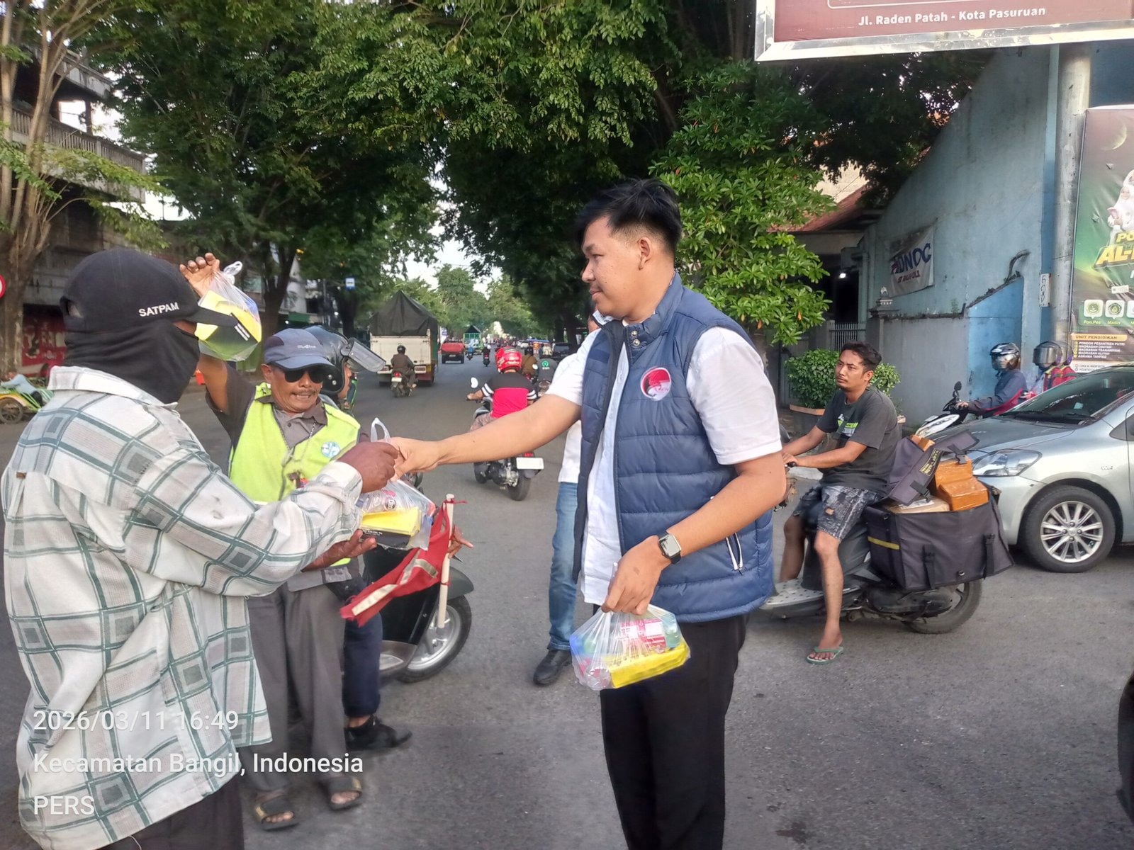 Sebanyak 250 paket takjil gratis dibagikan kepada para pengendara yang melintas di Jalan Pattimura, tepatnya di depan Pos Lantas Stasiun Bangil, pada Rabu sore (11/03/2026).