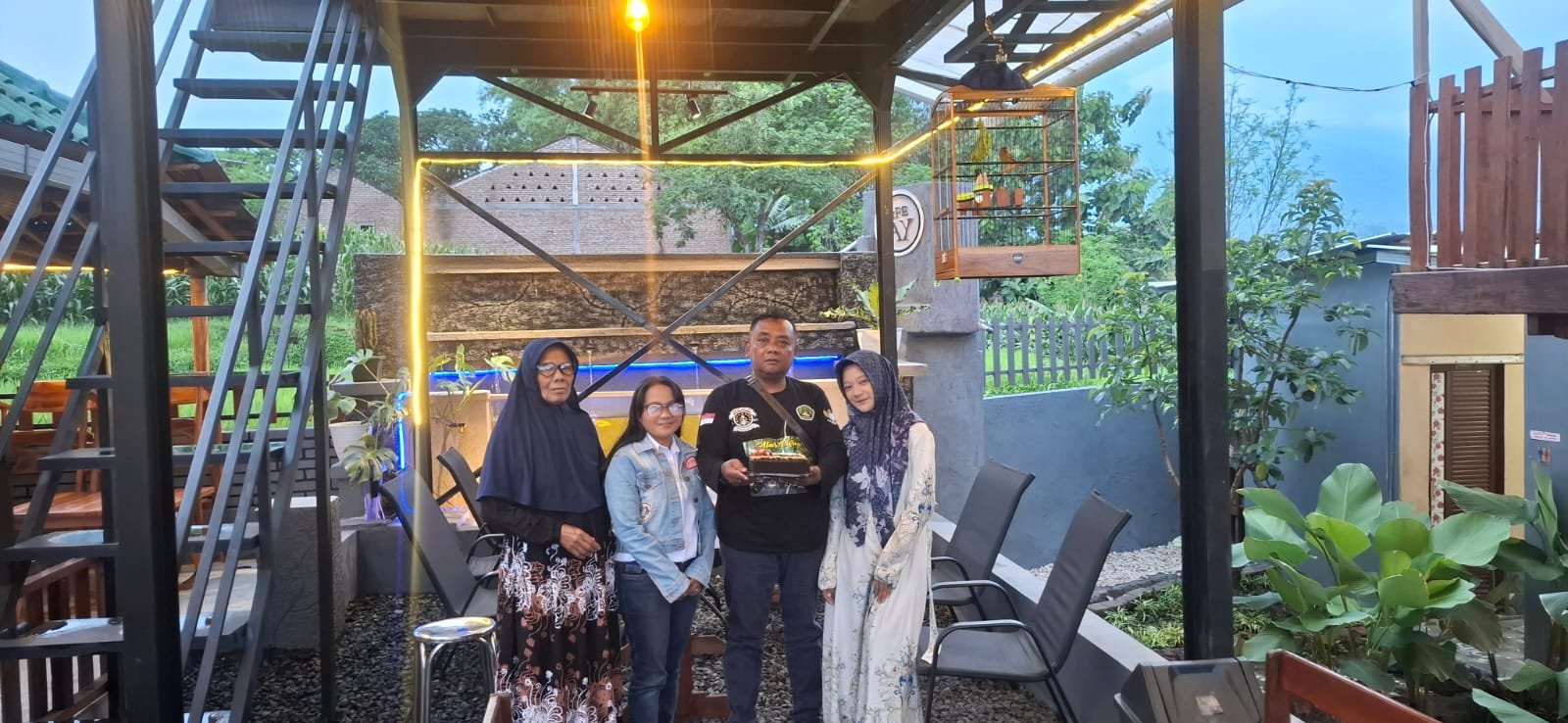 Gambar. Saat acara syukuran digelar di Cafe AY, Dusun Karangtengah, Desa Karangrejo, Kecamatan Purwosari, dan dihadiri oleh rekan-rekan seperjuangan serta putri tercintanya.(Foto.ist).