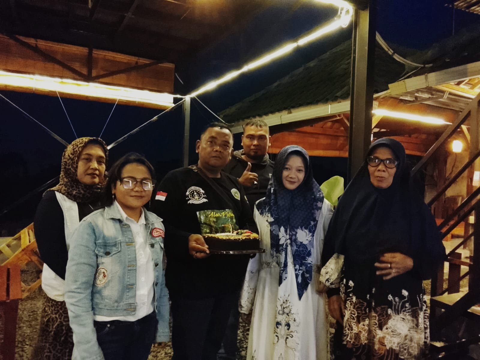 Gambar. Saat acara syukuran digelar di Cafe AY, Dusun Karangtengah, Desa Karangrejo, Kecamatan Purwosari, dan dihadiri oleh rekan-rekan seperjuangan serta putri tercintanya.(Foto.ist).