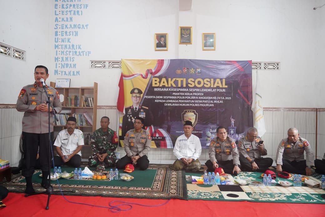 PASURUAN | KABARPRESISI – Para calon pimpinan Polri dari Pendidikan Kepemimpinan dan Pengembangan (PKP) Sekolah Staf dan Pimpinan Menengah (Sespimma) Angkatan 74 menunjukkan komitmen nyata melalui bakti sosial di wilayah hukum Polres Pasuruan, Rabu (12/11/2025).