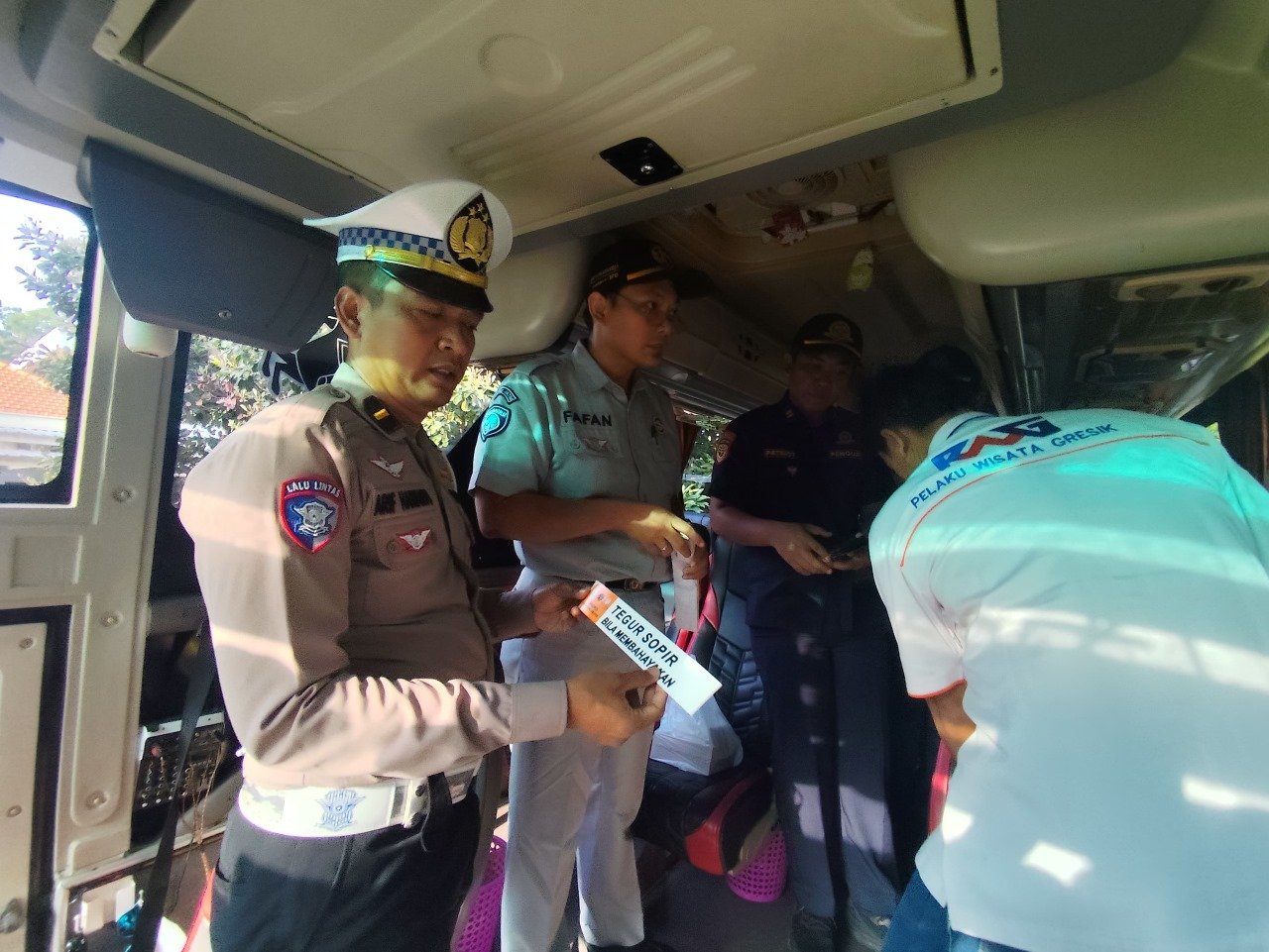 Kasat Lantas Polres Gresik, Akp Rizki Julianda Putera Buna,S.I.K.menjelaskan bahwa ramp check ini bertujuan memastikan kelayakan kendaraan yang digunakan serta kondisi pengemudi, guna meminimalkan potensi kecelakaan selama perjalanan.